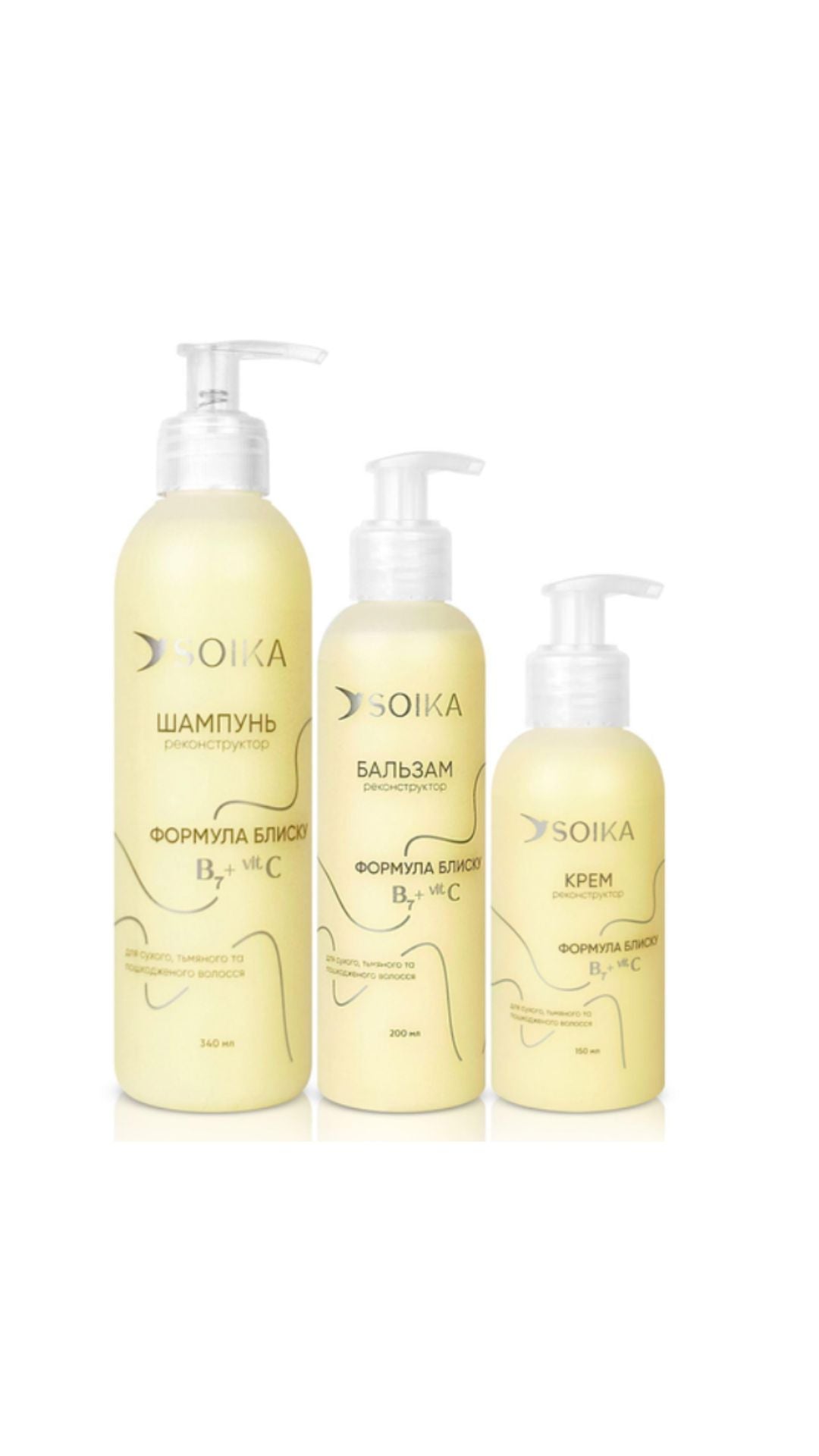 Комплекс Soika — це гармонія сили й ніжності, яка повертає волоссю здоров’я, гладкість та красу щодня.