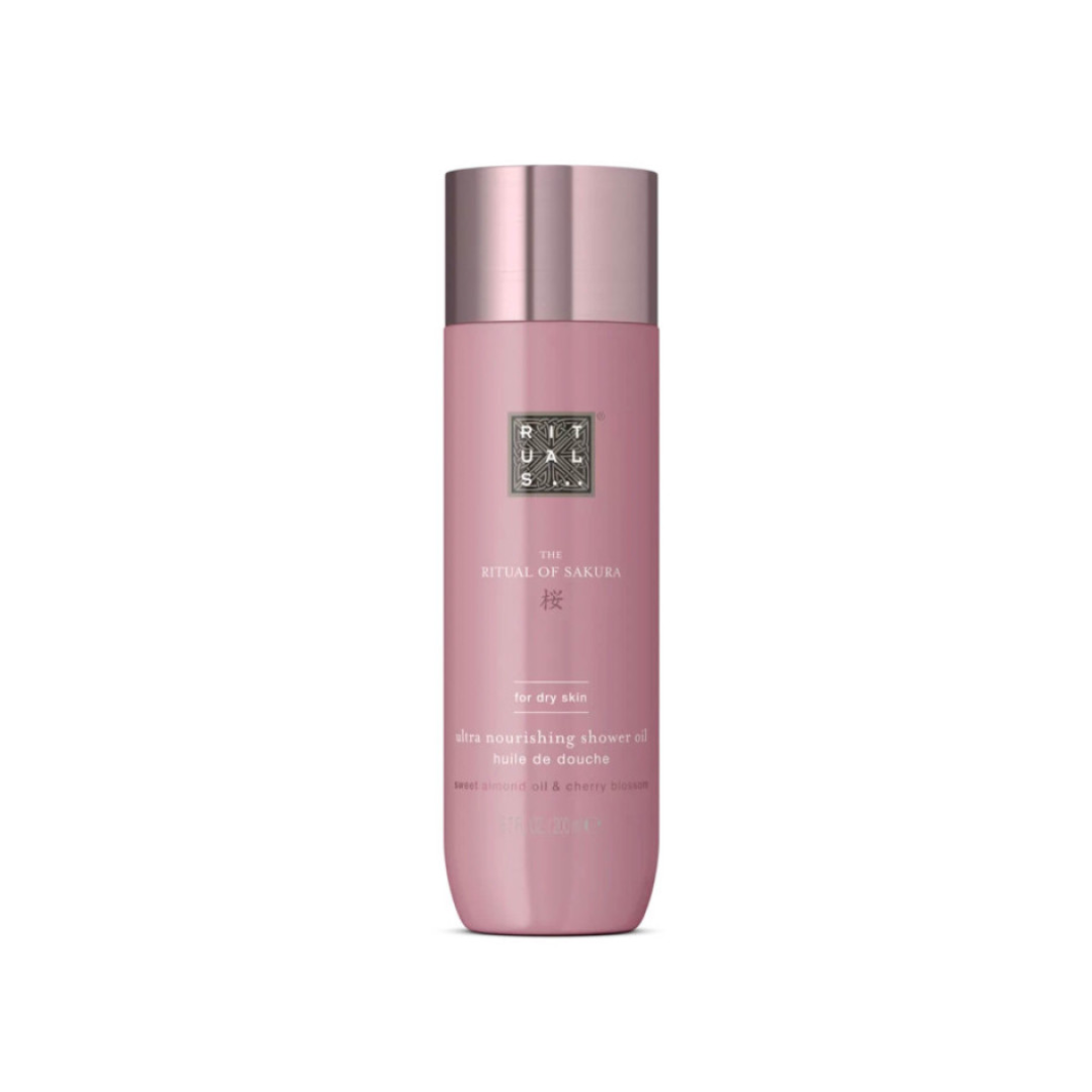 Олія для душу Rituals The Ritual of Sakura (Нідерланди) – косметика для очищення тіла на рослинній основі. Засіб з’єднавшись з водою перетворюється на густу піну, ніжно видаляє забруднення, пил та неприємні запахи тіла. Поживні олії зберігають баланс шкіри тіла, наповнюють клітини вологою, живлять і захищають від сухості. Екстракти рисового молока та квітів вишні насичують корисними компонентами епідерміс, повертають пружність, м'якість та шовковистість, відновлюють водний баланс. При регулярному застосуванні олії для душу зникне сухість, лущення та свербіння. Шкіра стане м'якою, бархатистою та пружною. Повернеться еластичність, гладкість і здорове сяйво, а протягом дня супроводжуватиме запах квітів квітучої вишні та рисового молока.