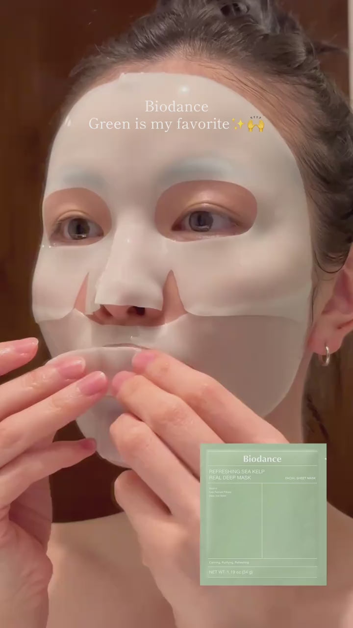 Відчуйте заспокійливу силу моря з глибокою гідрогелевою маскою Biodance Refreshing Sea Kelp Real Deep Mask — революційний догляд, який у 5 разів ефективніший у заспокоєнні шкіри, ніж традиційні засоби з Cica (центелою азіатською).