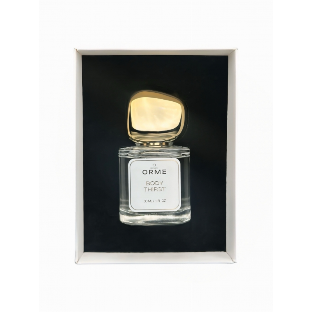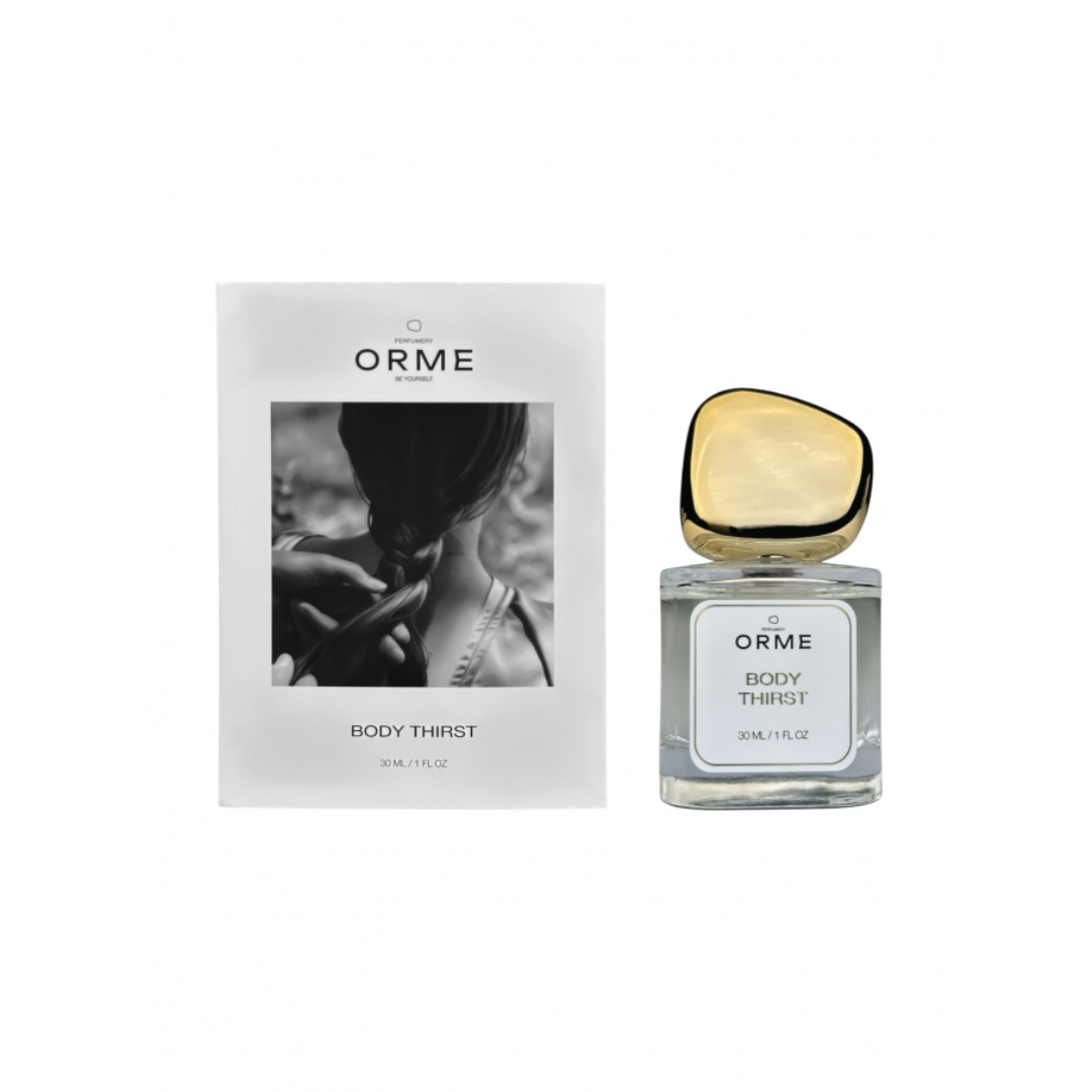 Body Thirst ORME 30 ml говорить про бажання бути ближче без слів — лише через відчуття і момент, він ніби дотик — невидимий, але такий відчутний. Його хочеться вдихати повільно, із закритими очима. Він несе спокій, довіру, тілесність — і водночас ніжну пристрасть, без слів і зайвих дотиків.